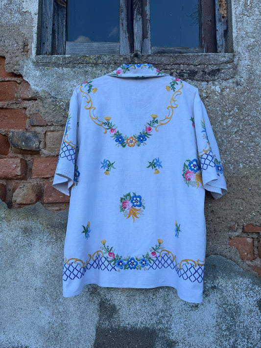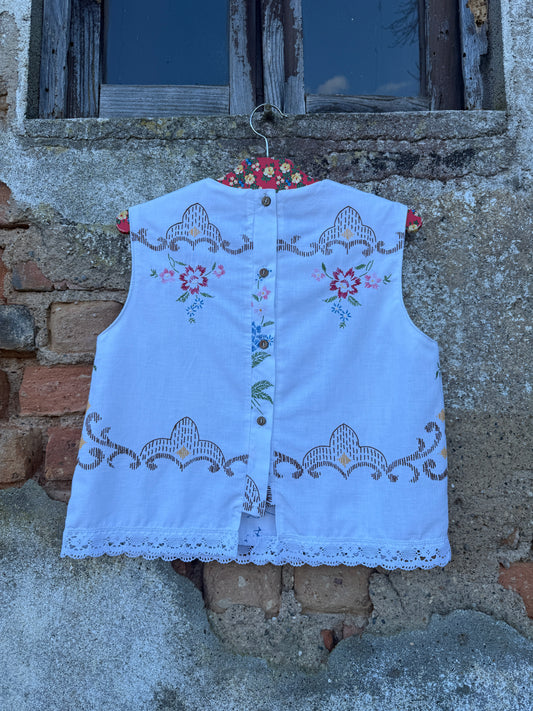 Em 2021 aprendi a costurar. Nessa altura não sabia que ia descobrir uma paixão e que, com ela, ia dar uma nova função às minhas mãos. É com elas que em 2024 crio a Grita. Para as minhas peças utilizo tecidos domésticos antigos e usados, principalmente toalhas de mesa mas também cortinas, lençóis, entre outros tecidos que descubro em feiras e lojas de velharias que percorro pelo país.
